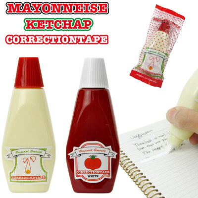ギフト対応 マヨネーズ&ケチャップモチーフのカワイイ修正ペン/CRRECTIONTAPE お弁当用の調味料?!いいえ実は・・・パッケージまでこだわった、美味しそうなマヨネーズとケチャップ風の修正テープです。