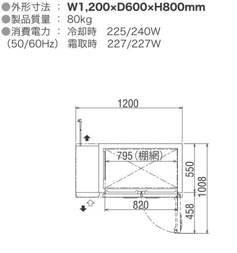※納期についてはお気軽にお問い合わせください※電 源:単相100V(50/60Hz)外形寸法:幅1200×奥行600×高さ800(mm)内形寸法:幅840×奥行455×高さ595(mm)有効内容積:241リットル庫内温度:-20℃以下消費電力:】冷却時225/240W 霜取時227/227W内 装:ステンレス鋼板圧縮機公称出力:100W製品質量:80kg・センターフリータイプ★