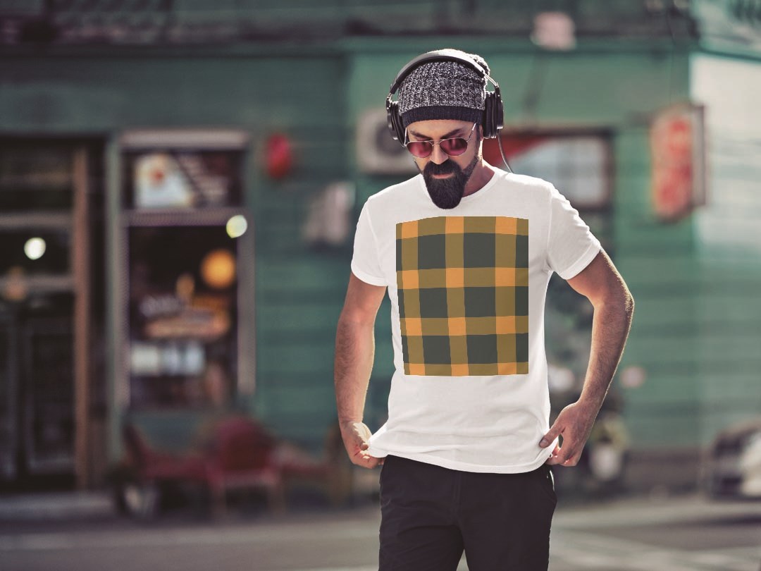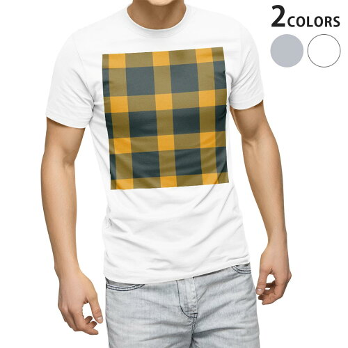 tシャツ メンズ 半袖 ホワイト グレー デザイン XS S M L XL 2XL Tシャツ ティーシャツ T shirt 004413 チェック 模様 黄色