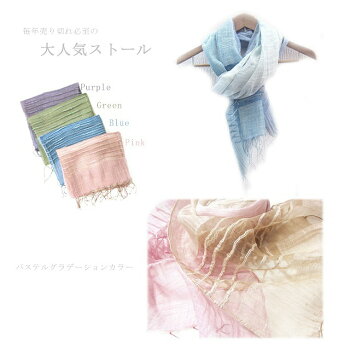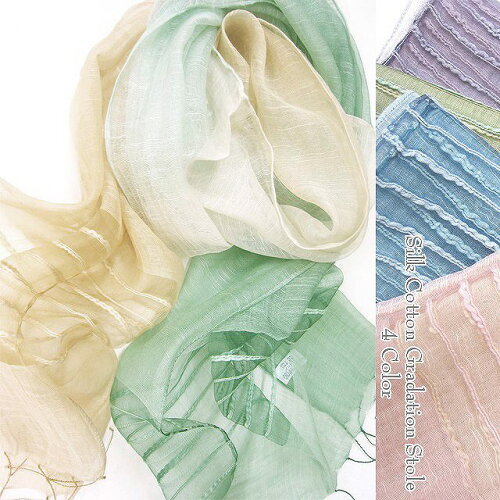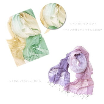 ストール/グラデーションシルクコットン大判ストール スカーフ レディース 春 夏 春夏 uv ピンク ブルー 青 グリーン 緑 イエロー 黄色 パープル 紫 プレゼント ストール