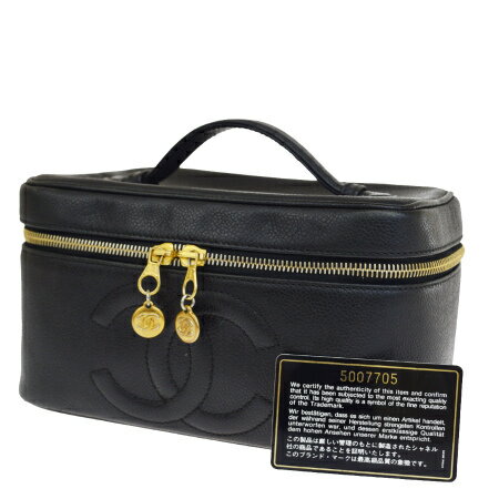 【中古】 シャネル CHANEL バニティバッグ ハンド ココマーク ブラック キャビアスキン レザー 74ER440