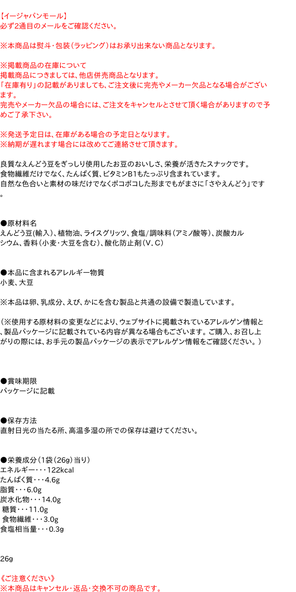 [関連キーワード:お菓子 おやつ スナック スナック菓子 えんどう豆 子ども 行楽 ミニサイズ]まとめ買いはコチラ(激安ケース) >>【イージャパンショッピングモール】内のみのお買い物は、送料一律でどれだけ買っても同梱する事が出来ます。