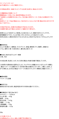 〜栄養成分(1袋(26g)当り)〜 エネルギー・・・126kcal たんぱく質・・・4.3g 脂質・・・6.6g 糖質・・・10.6g 食物繊維・・・2.9g ナトリウム・・・111mg (食塩相当量・・・0.3g) カルシウム・・・53mg ビタミンB1・・・0.07mg 26g【広告文責】株式会社イージャパンアンドカンパニーズ 072-875-6666《ご注意ください》 ※商品がリニューアルしている場合、リニューアル後の商品にてお届けとなる場合がございます。