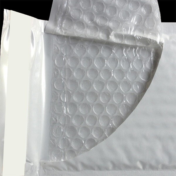クッション封筒(緩衝材つき封筒)封緘シールつき荷物を衝撃から守るクッション (緩衝材・エアキャップ付き)が内側に付いた ウィンバッグやポップエコのような白色クッション封筒です。